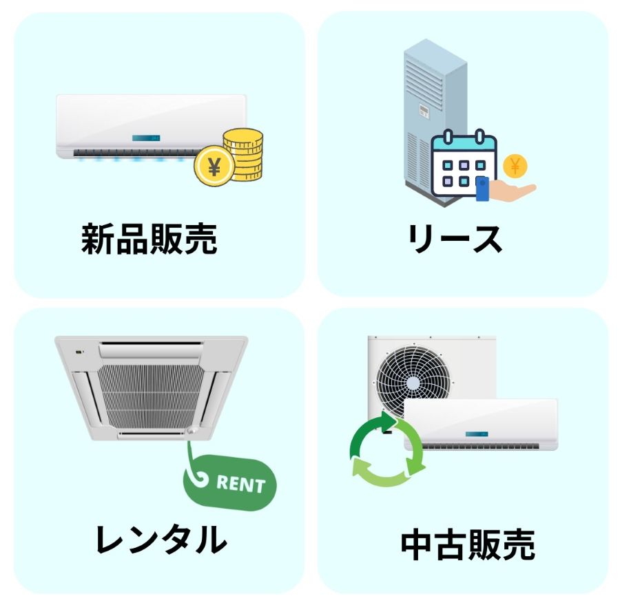 特に業務用エアコンに関して強みを持っており、最新機種の販売+工事に加え、リース、レンタル、中古販売も行っています。