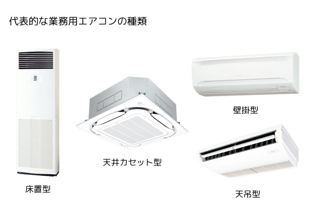 代表的なのは下記の4種類。「業務用エアコン」と言えば、まずこのタイプを指します。