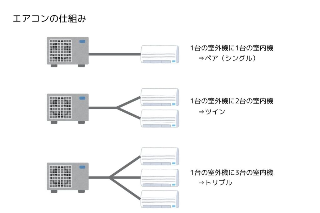 1台の室外機に何台の室内機が付いているかで呼び方が変わります。